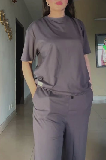 Crafted in soft jersey cotton, this co-ord set offers all-day ease with a refined look. Designed for travel, relaxed days indoors, or casual outings, it blends comfort with effortless style.